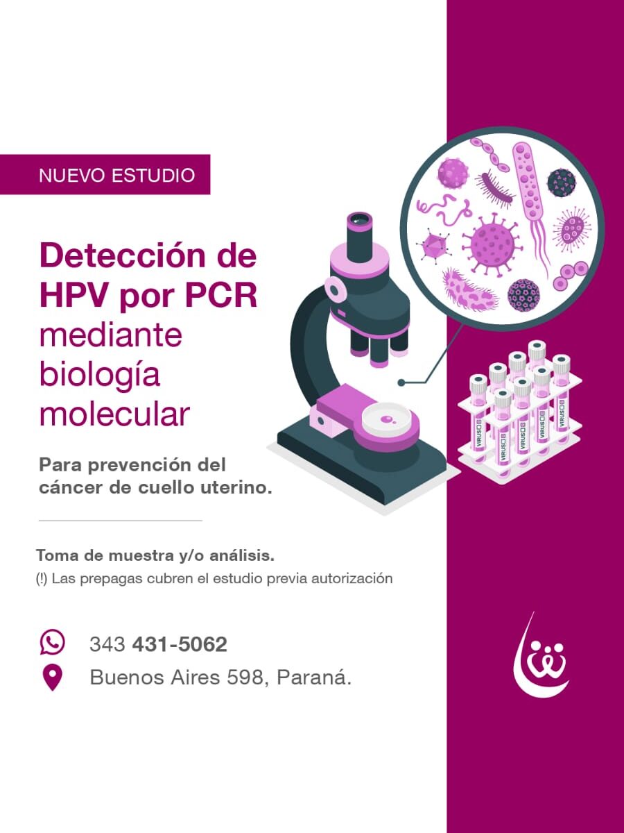 Fernanda Carot (Mat. 979), Bioquímica del Centro de Especialidades Bioquímicas de Paraná, describe este análisis como una técnica que amplifica fragmentos del ADN viral, brindando resultados precisos quepermiten identificar los tipos virales, usualmente el VPH 16 y 18.